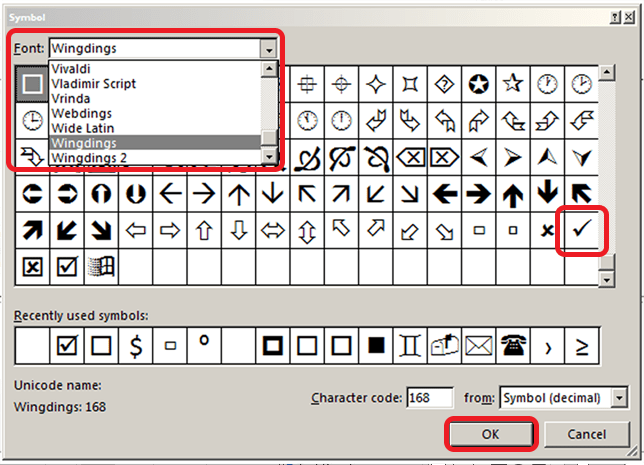 Kemudian, cari dan pilih jenis huruf Wingdings 2 dan klik OK.