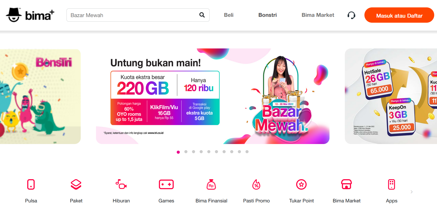 Buat kamu yang tidak mempunyai aplikasi Bima+, maka bisa tukar poin bonsTri lewat situs resminya. Namun dengan catatan, mengakses situs resmi harus lewat perangkat smartphone.