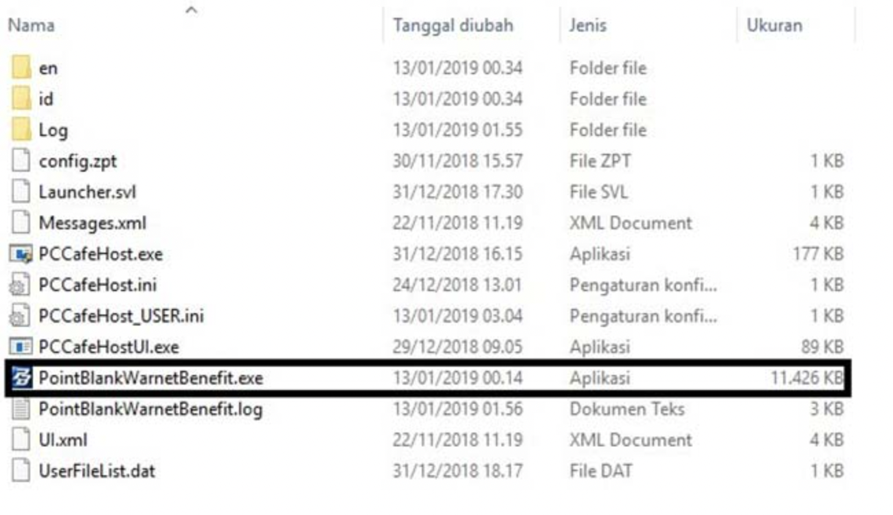 - Apabila sudah selesai, kalian dapat mengakses File Explorer serta kalian cari file dengan nama PointBlankWarnetBenefit.exe.