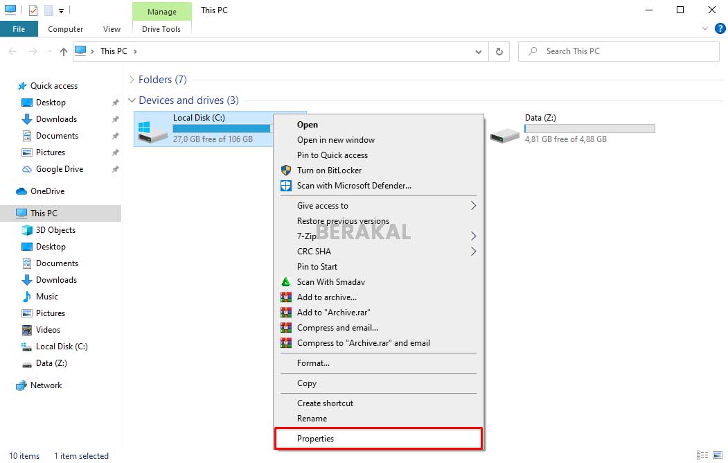 - Klik kanan pada partisi yang akan di cek, kemudian pilih Properties.