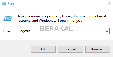 - Bukan Run dengan cara tekan tombol Windows + R.